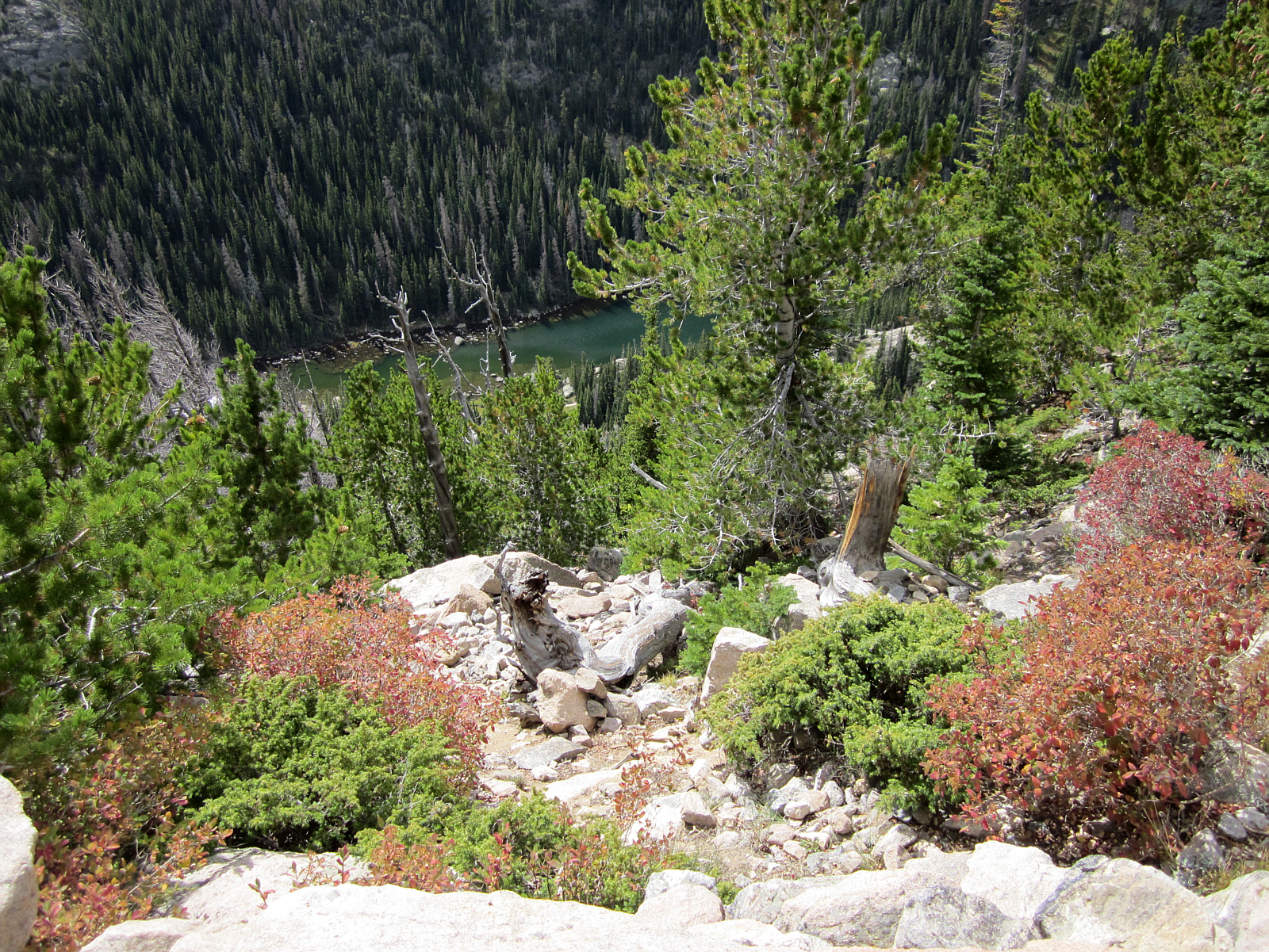 ![]() As the hike continues to climb upwards, Dream Lake overlook is a great place to take a picture and relax for a bit. This steep cliff is directly over the trails and lakes hiked my first day here. I'll carefully lean over the edge just a bit to get a picture of the lake far below...