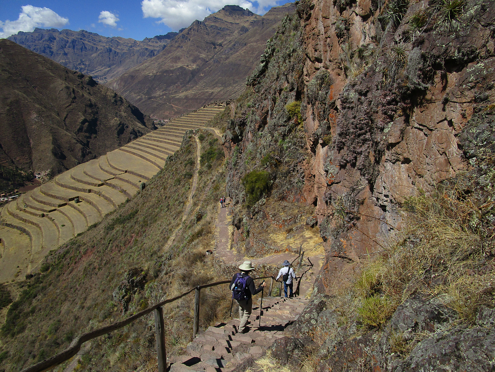 Hopping out of the car at a high point on the road, we hike down to the valley, stopping to visit interesting archeological sites along the way. The car will meet us later in town at the end of our hike. These trails & terraces might have been built a thousand years ago, and many are still in use today for farming.