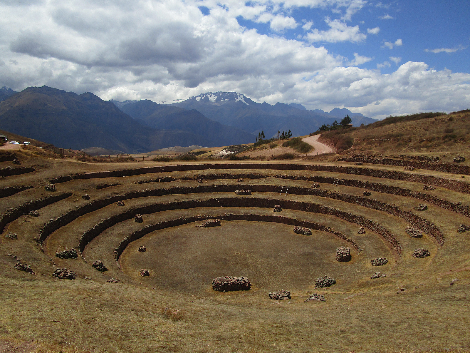 There are several round (and roundish) terraces in this area, and it's possible these may also have been used for gatherings, or as an amphitheater. Up until about 10 years ago, locals were still farming these -- but that is currently suspended to allow archaeological preservation and repair of the site.