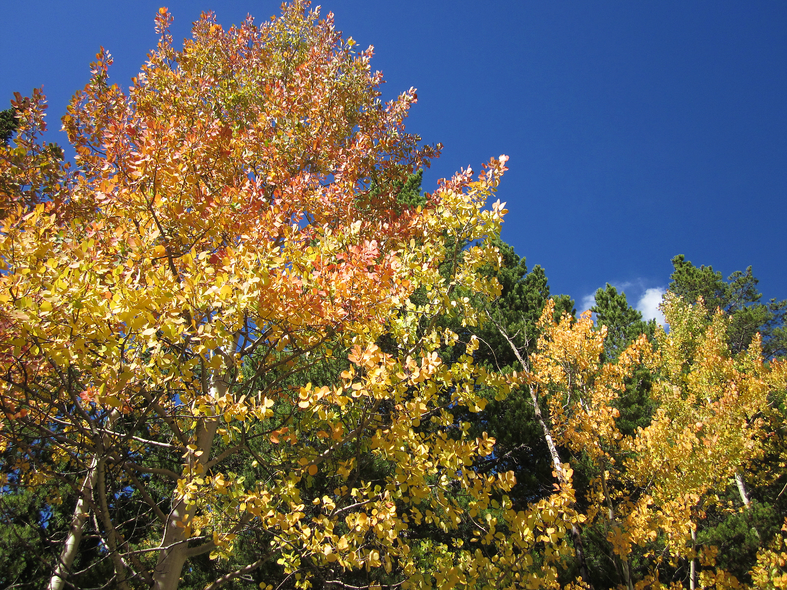 This is a great time of year to visit Colorado. Many of the trees here are pine (which stay green all year), but others like aspen and birch are turning vibrant Autumn colors.