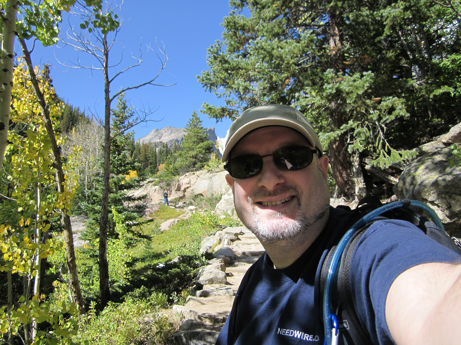 From here the trail climbs more steeply up with the help of 'stairs' (behind me) towards Dream Lake.