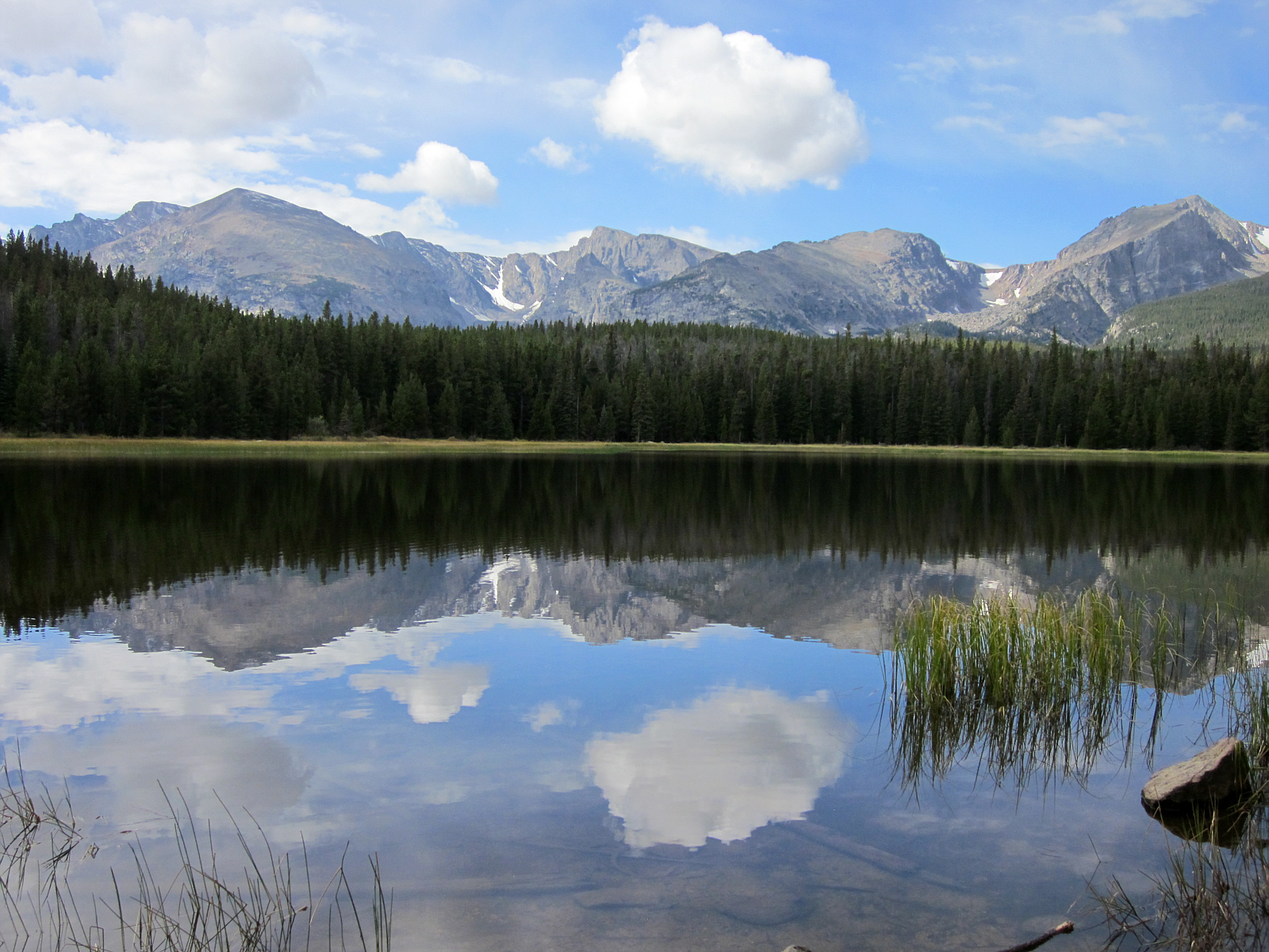 Calm lakes are perfect for reflection before resuming the hike down Bierstadt Moraine.