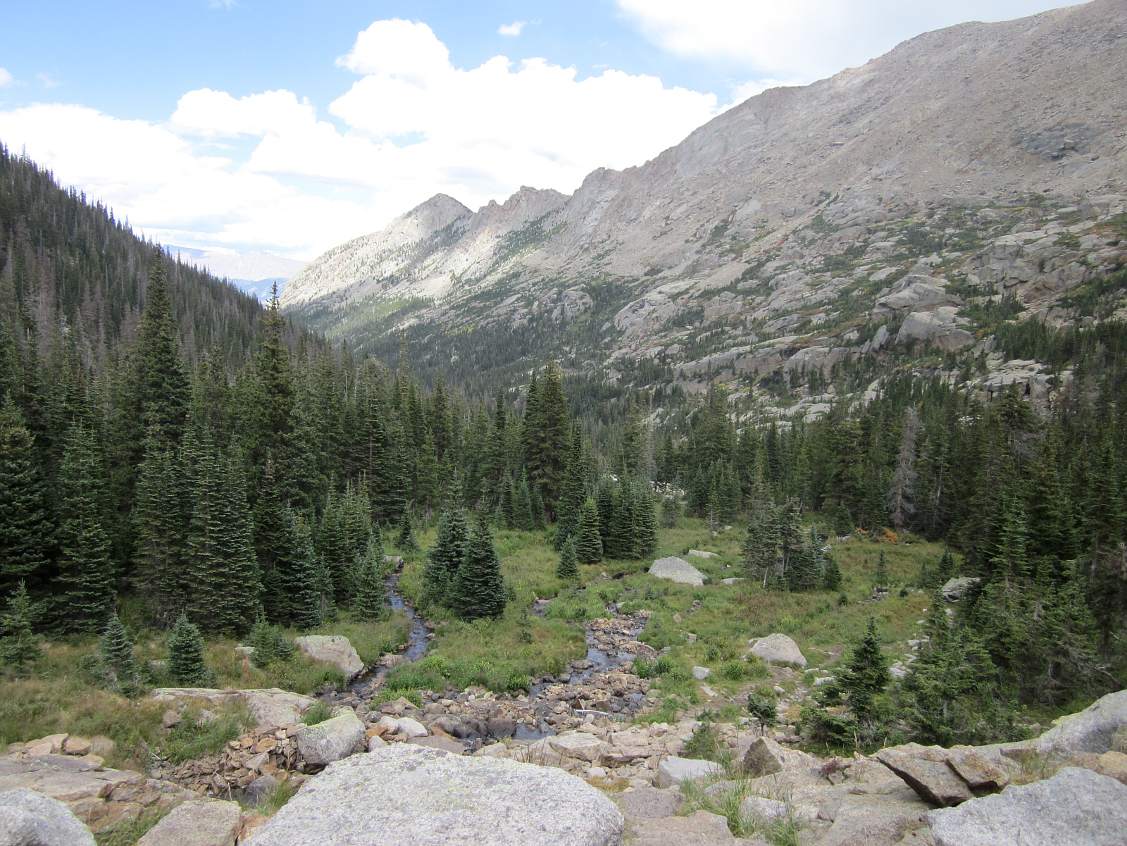Looking down from the lake, rocky streams branch out like fingers, feeding the other lakes passed earlier, as I begin the long, steep hike down.