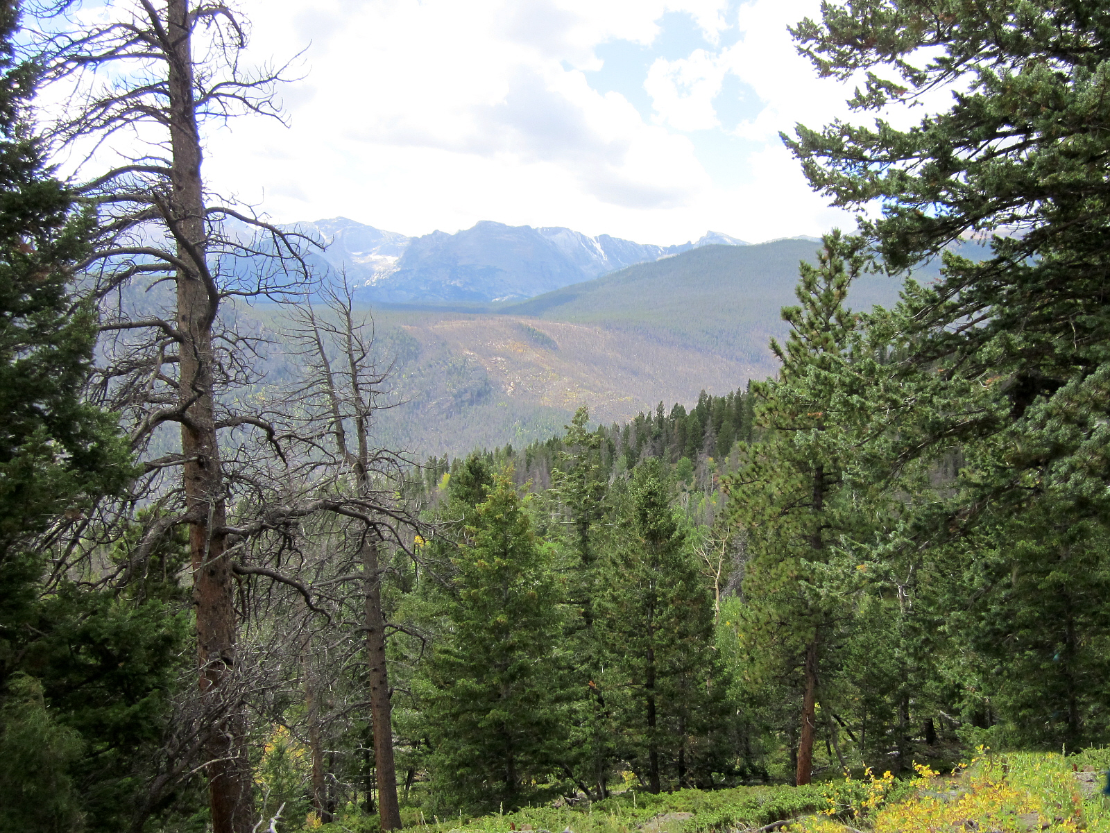 Looking up from here, you can see some of the many glaciers high in the mountains.