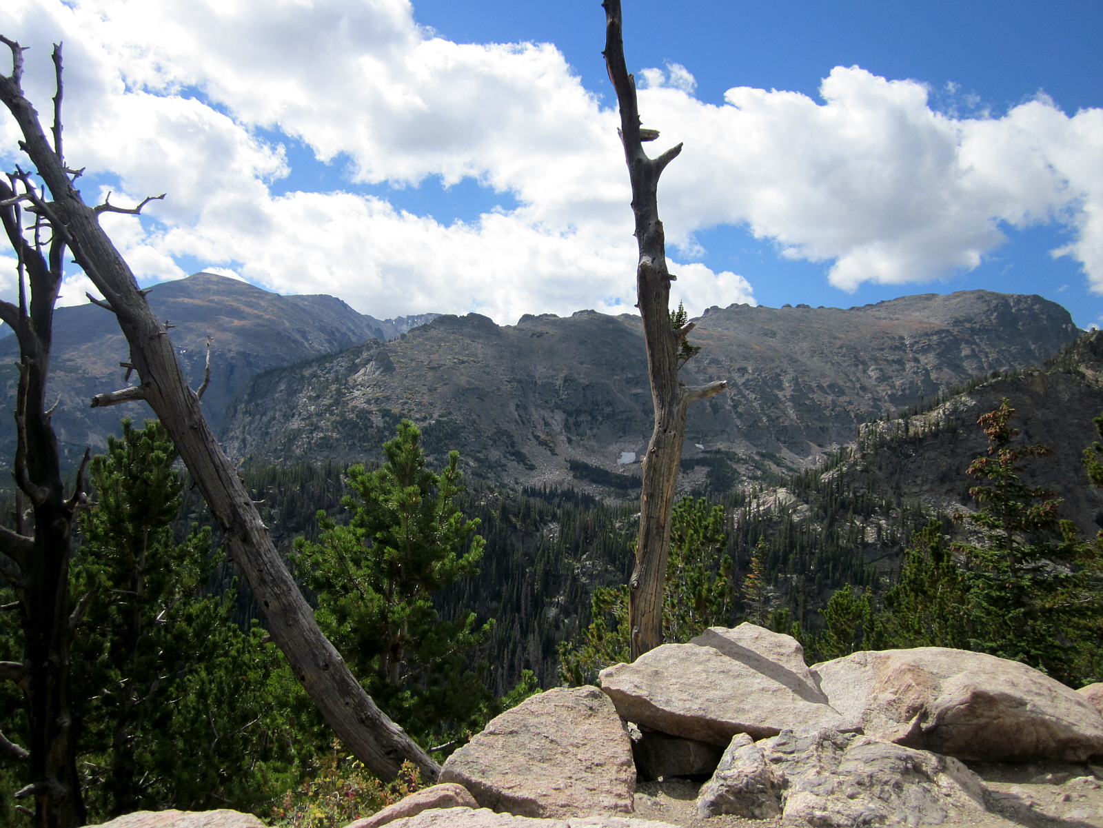 ![]() As the hike continues to climb upwards, Dream Lake overlook is a great place to take a picture and relax for a bit. This steep cliff is directly over the trails and lakes hiked my first day here. I'll carefully lean over the edge just a bit to get a picture of the lake far below...