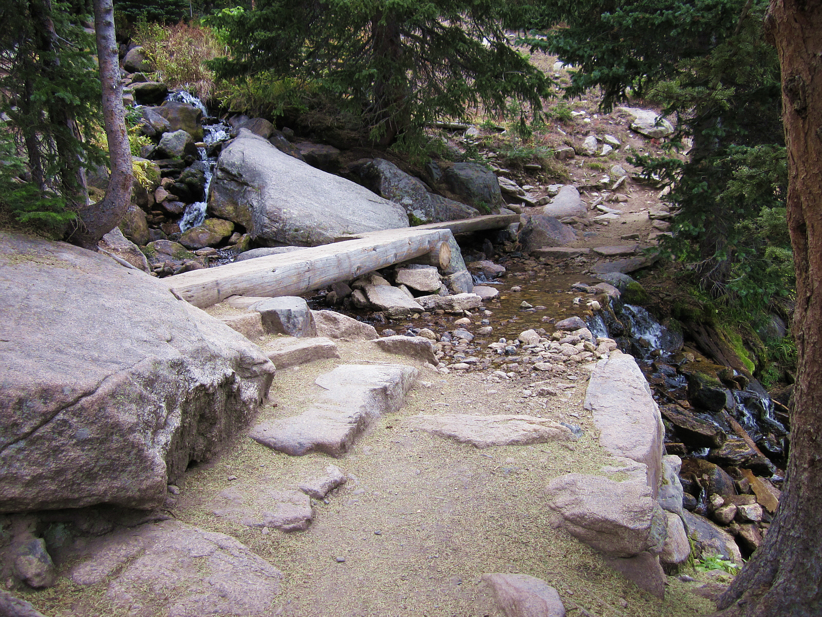 Where trail & brook intersect, wooden log bridges ease the crossing. This is the dry season -- and I imagine these bridges are more essential in the spring when the water is gushing at higher volume.