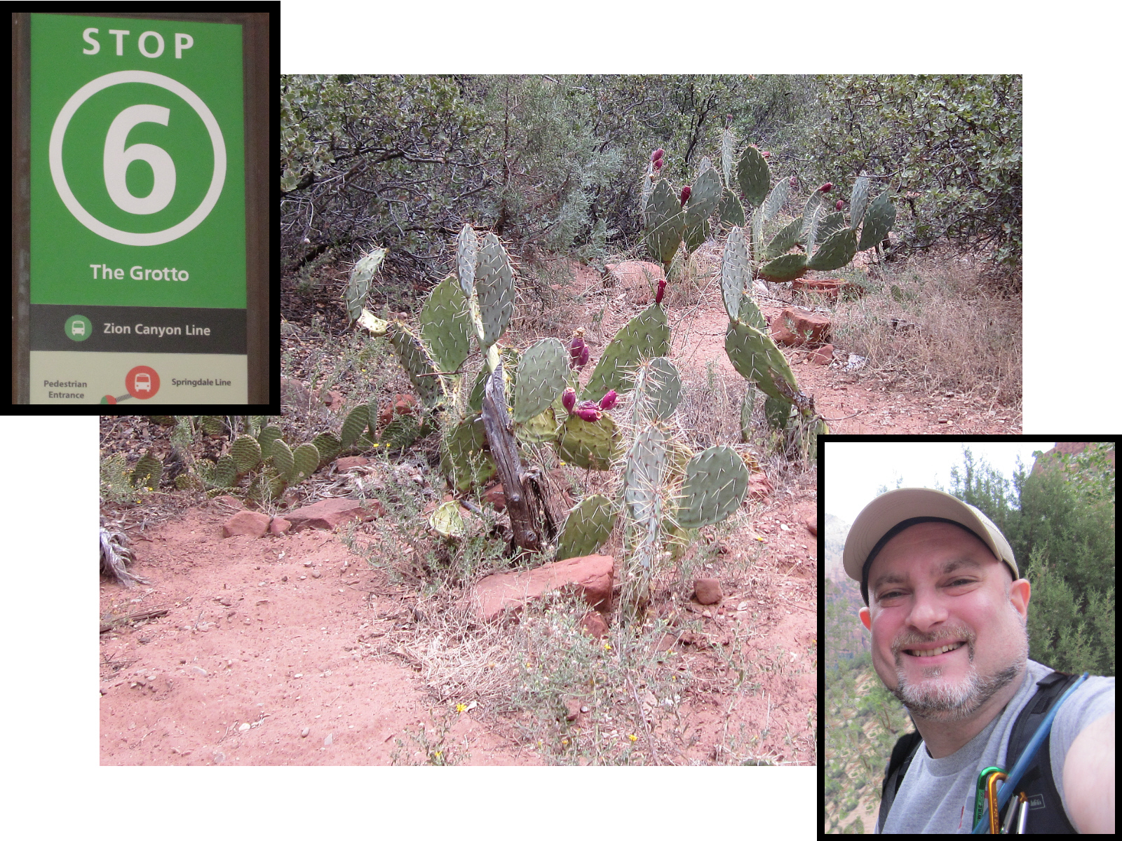 ![]() Up early on a cool, overcast Friday morning -- actually perfect for hiking in Utah (which is usually very hot & sunny). Stop 6 ('The Grotto') on the public park bus for one of the best (and most popular) hikes in the park -- Angel's Landing. If you only have time to do one hike here -- this is the one. |
