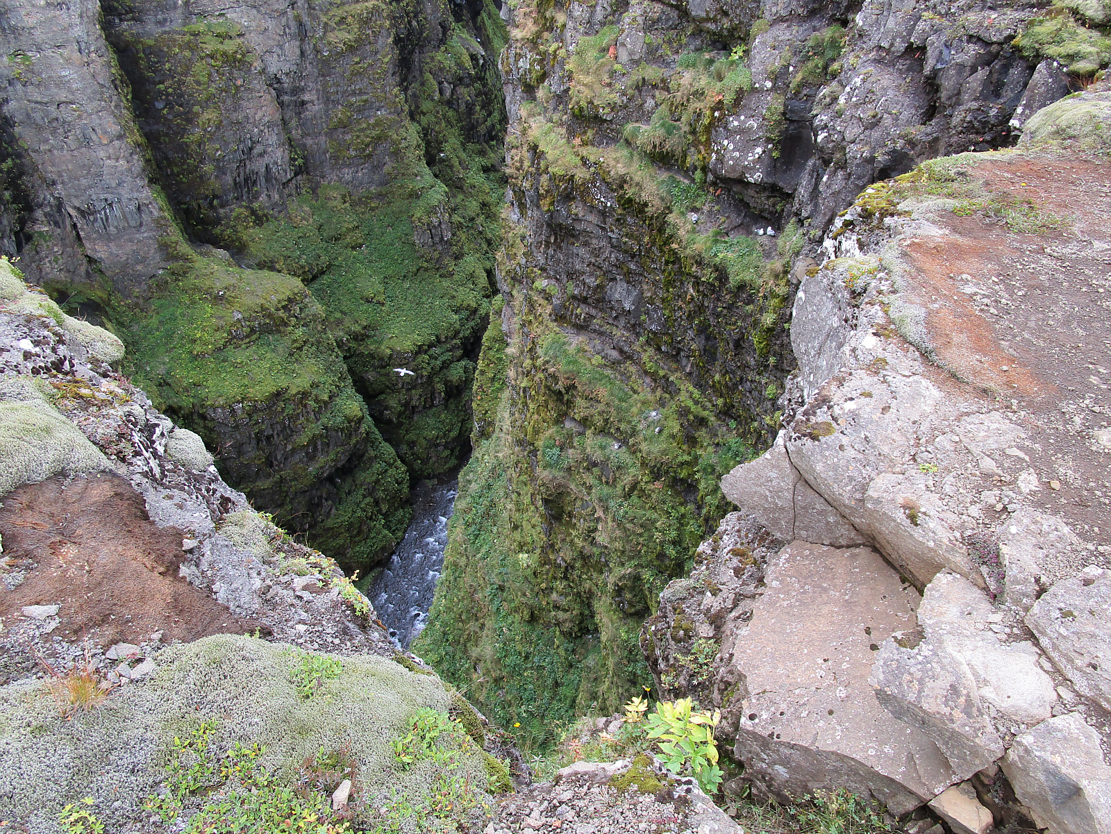 Carefully leaning over the edge just a little, I see many birds nesting in the cliff faces.