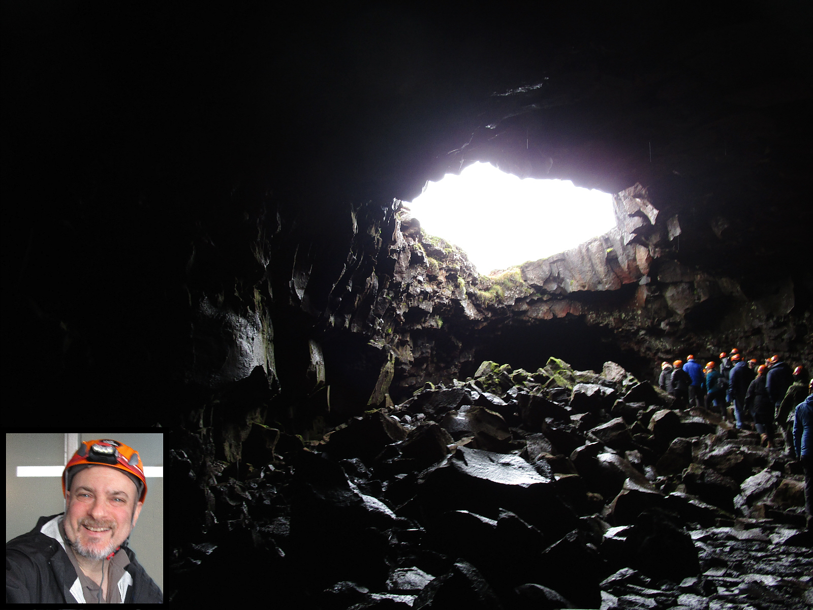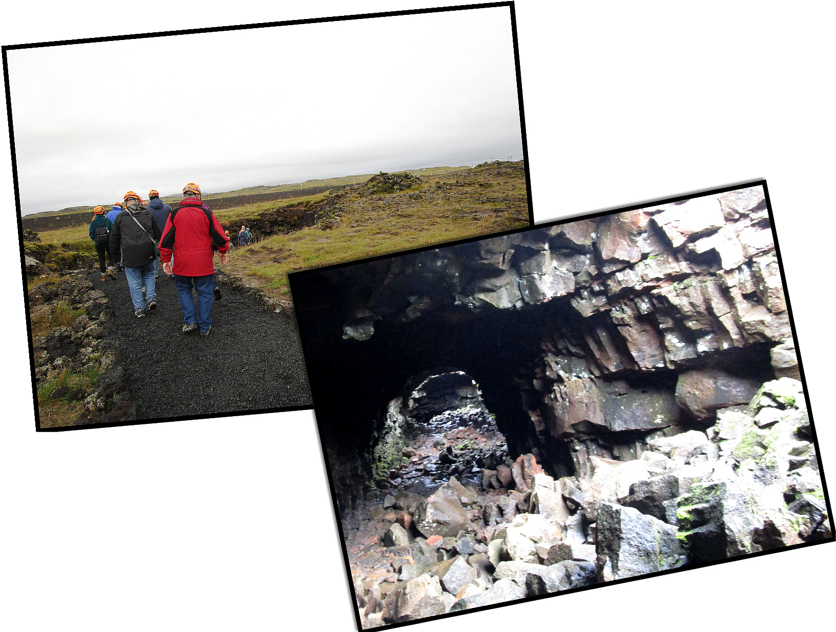 The next morning (Sun), and a visit the Raufarhólshellir lava cave for a 1 hour guided tour. Each visitor is given a hard hat with headlamp, and we walk down into the cave to learn how lava tubes are formed and about some of the geology of the area.