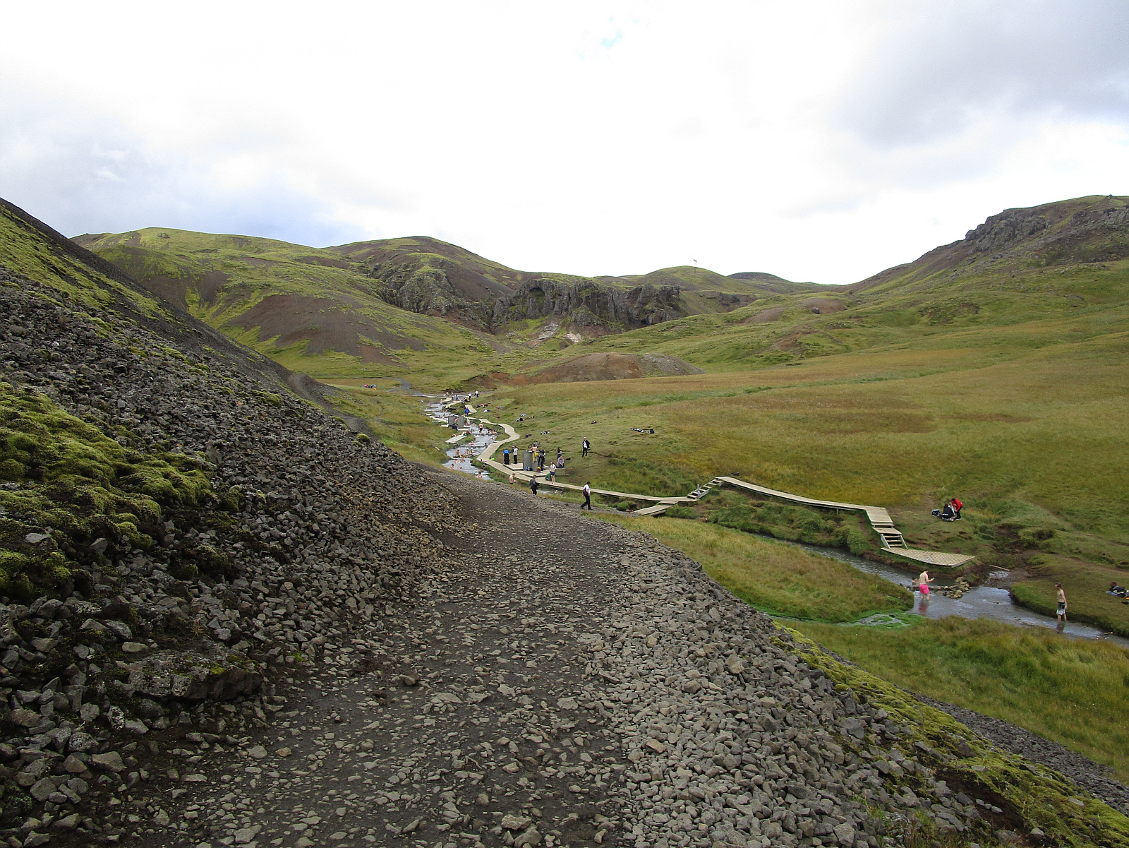 ![]() After about an hour on the trail, is the 'magical' spot in the river where the hot and cold waters mix perfectly to create a "hot river" just the right temperature for soaking (assuming you brought your bathing suit on the hike). A wooden boardwalk provides easier access to the river, and many people are soaking in the hot waters here.