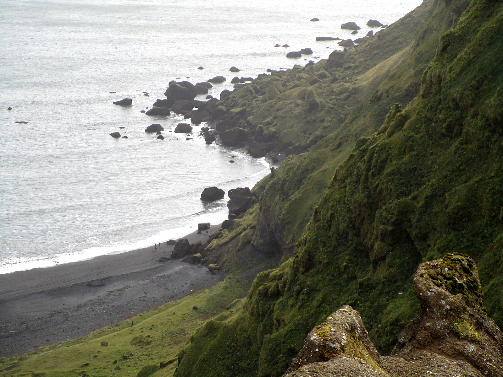 Looking down, I can see the nice black sand beach right at the edge of town -- and walk down to explore it.