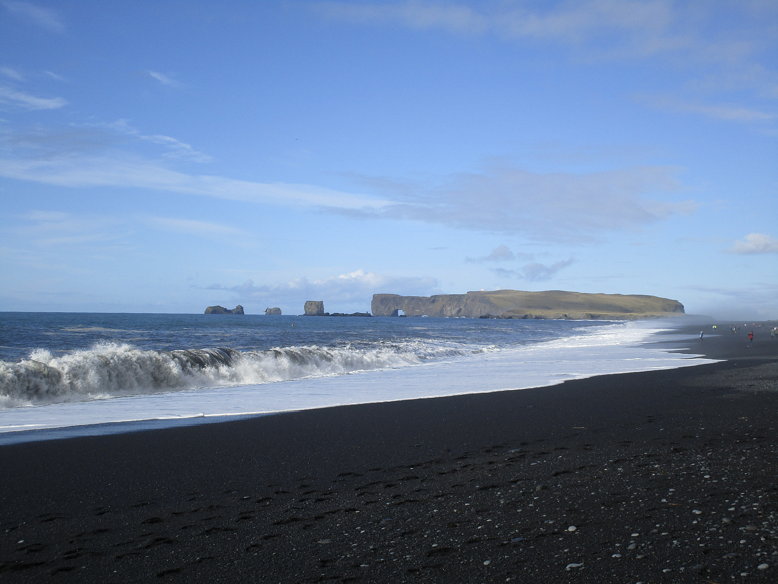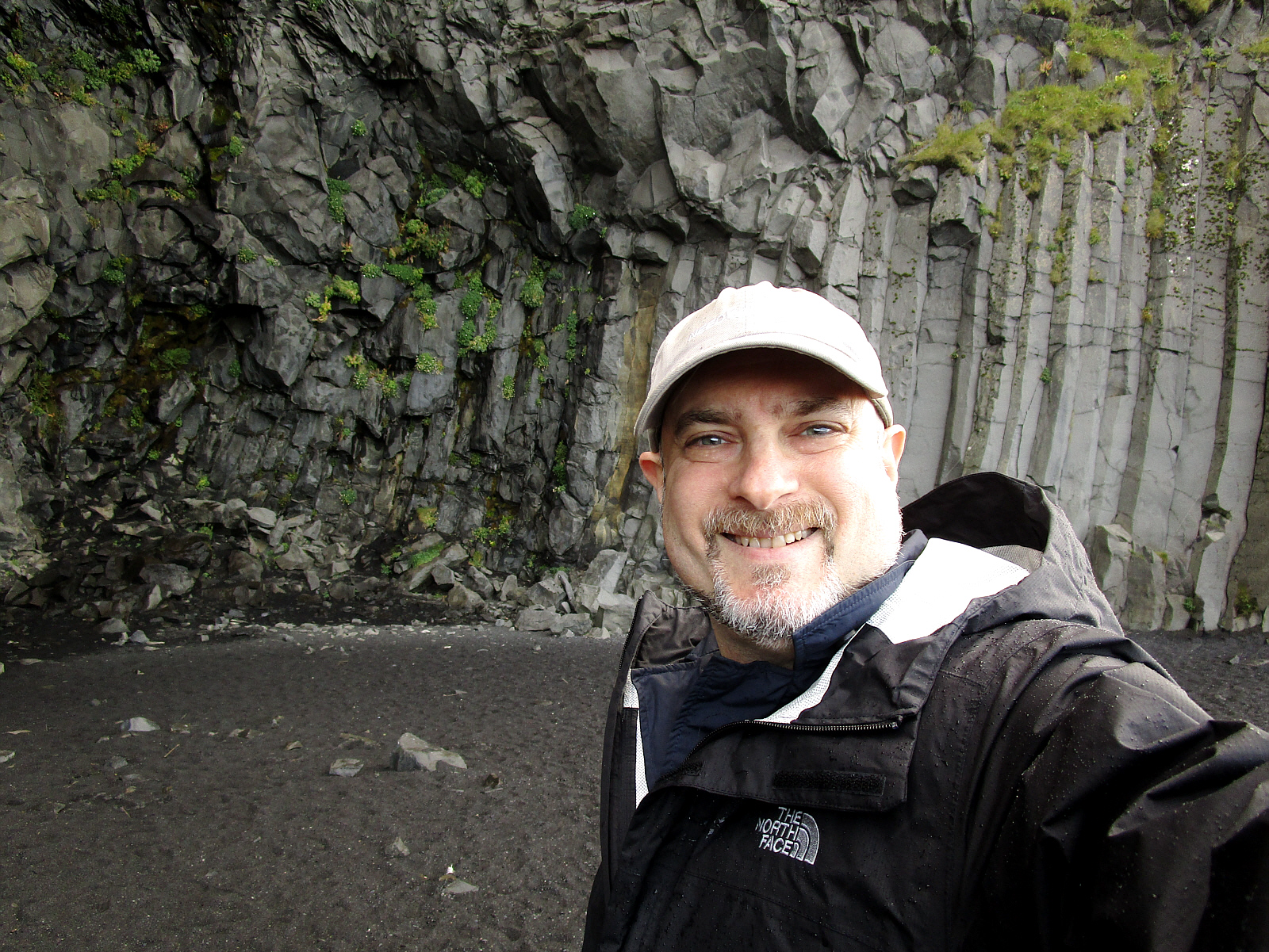 A morning stop at Reynisfjara Hálsanefshellir black sand beach (try pronouncing it -- I dare you). This is a must-see location with wide beaches and expansive views, and it's easy to spend an hour or more here. It's actually raining right now (sun shower), but reasonably comfortable and not too windy.