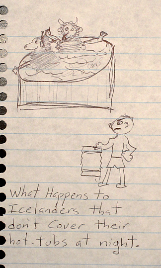 Just about every hotel (and house) in Iceland has an outdoor hot tub -- and it's a great way to relax and warm up on those cold days. Some of the hotels cover their tubs at night -- others don't. During hikes near hot springs, I often saw sheep grazing right at the bubbling hot springs and wondered if they like the warm water too. Is this what happens if you don't cover your tub?