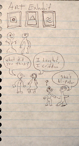 Okay, last one (I promise). During a visit to the modern art museum, I saw plenty of unique and interesting exhibits -- but also some that didn't quite make sense (at least to me), and it inspired this drawing.
