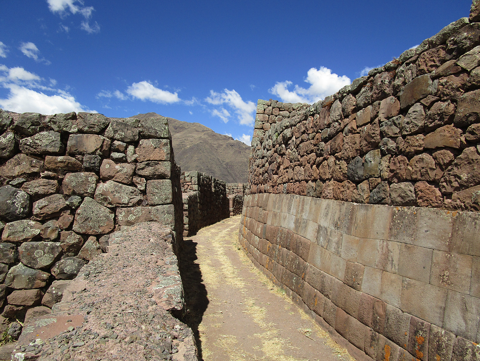 ![]() Entering the structure, it looks as if it could have been a small town or village -- with 'streets' and many buildings. It's known that many of these sites were built over long periods of time, with later construction sometimes being finished by the next generation -- and the difference is obvious. Original construction, possibly by Pachacuti Inca, might have been completed later by one of his sons, using the more 'rustic' style of stonework near the top.