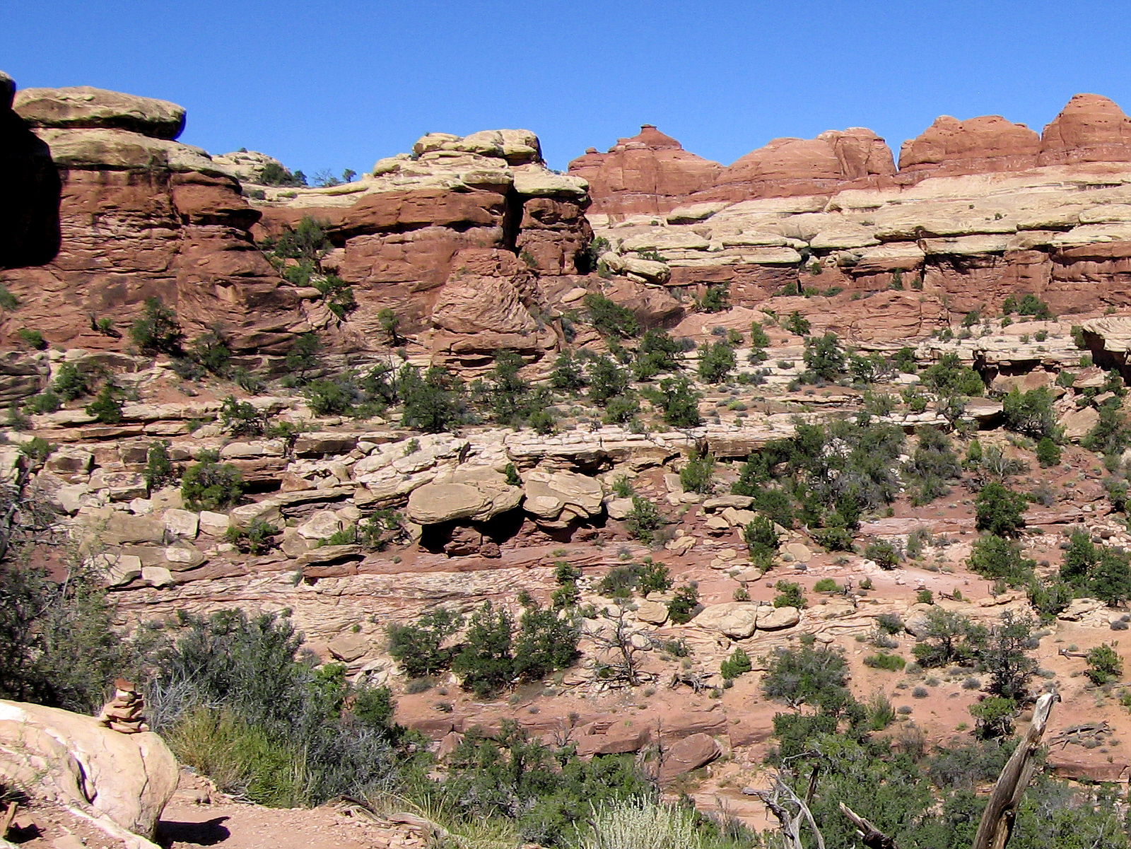 Even photos that weren't quite good enough to make it into past 'Virtual Vacations' contain cairns (bottom left of photo). These ever-present markers guide me towards Elephant Hill Trail in Chesler Park, Utah.